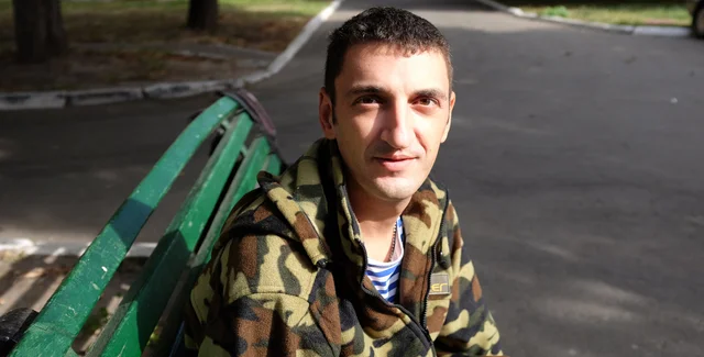 30-летнего Алексея Аванесяна мобилизовали в конце июня 2014-го. Через два месяца его ранили. Алексей научился жить без ступни — она ампутирована. Сейчас он возит грузы в зону АТО, в Киевский военный госпиталь, помогает другим раненым