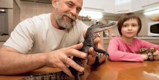 По словам Станислава, его воспитанник очень спокойный и абсолютно нестрашный: можно и погладить, и на руках подержать. Единственное, чего не стоит делать, так это класть пальцы в зубастый рот или мешать есть мороженых креветок, которые составляют основное меню животного. Зовут крокодила Обама: его появление в семье совпало со стартом президентских выборов в Штатах.