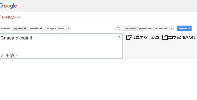 Поддержка вымышленного алфавита включена для всех языков, представленных в Google Translate, в том числе – для украинского.