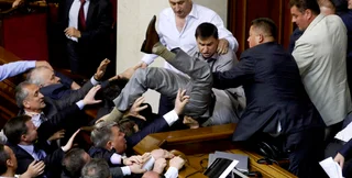 В украинском парламенте похожий инцидент произошел в апреле 2010 года, когда Рада ратифицировала Харьковские соглашения, предусматривающие продление срока пребывания Черноморского флота России в Крыму в обмен на скидку со стороны "Газпрома".