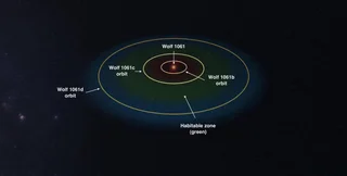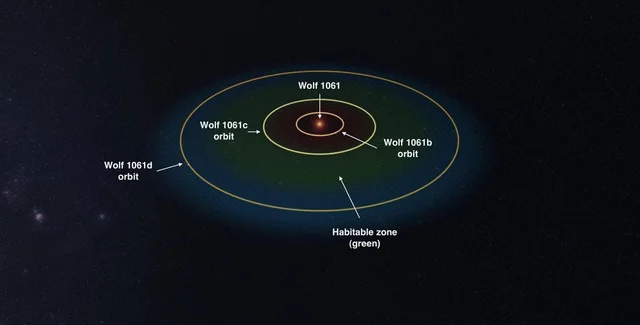 Планета с массой в четыре раза превышающей массу Земли обращается вокруг красного карлика Wolf 1061, поэтому она получила название Wolf 1061c. По словам ведущего исследователя Дункана Райта, астрофизика из университета Нового Южного Уэльса (UNSW), вокруг звезды вращаются три планеты, но только одна из них находится в "зоне Златовласки" – то есть в зоне, условия которой удовлетворяют условиям, необходимым для наличия жидкой воды.