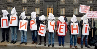 У Кабмина небольшой митинг. Симпатичная пара, юноша и девушка, держат один на двоих плакат: "Спасите 74 тысячи больных". Стайки госслужащих одна за другой просачиваются в здание Кабмина. Прежде чем исчезнуть в его лабиринтах, кто-то из прохожих берет из озябших рук листовки. Но в основном чиновники проходят мимо, стараясь не пересекаться взглядом с митингующими.