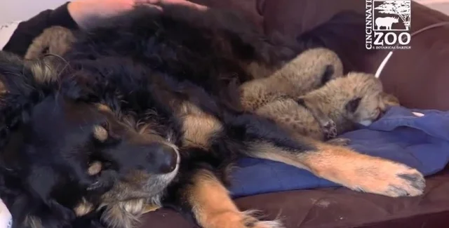 Овчарка и ее приемные дети живут в зоопарке Цинциннати (США).