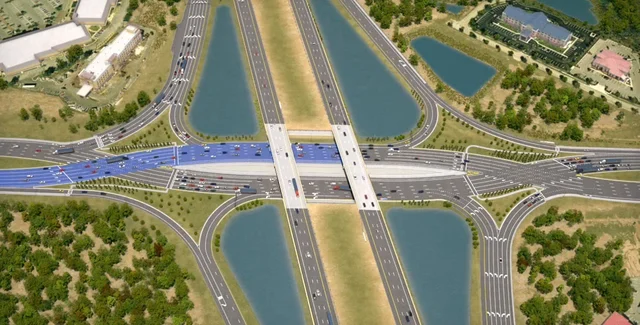 Одна такая развязка уже функционирует неподалеку от города Спрингфилд в штате Миссури. В течение 150 дней ученые проводили наблюдения за пересечением двух автомобильных магистралей, и им удалось отметить, что благодаря новому решению количество ДТП снизилось на 60%.