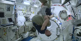Пик принял позу зародыша, после чего командир станции Тим Копра раскрутил его так быстро, как мог.