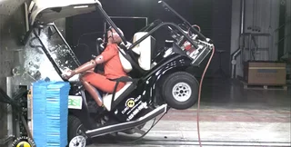 Электромобиль подвергся фронтальному краш-тесту на скорости 50 км/ч со 100% перекрытием и боковому удару на скорости 50 км/ч. Увы, плачевный результат эксперты Euro NCAP оценили всего в два балла. При фронтальном столкновении в опасной "красной" зоне оказалась голова, туловище и ноги манекена, а при боковом ударе "зеленой" осталась лишь область живота.