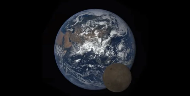 Космическая обсерватория DSCOVR была запущена на первую точку Лагранжа системы Солнце – Земля в феврале 2015 года. Она вращается по сложной переменной эллиптико-круговой орбите, известной как орбита Лиссажу, которая пересекает орбиту Луны приблизительно четыре раза в год. Однако спутник Земли проходит между нашей планетой и космическим аппаратом всего один-два раза в год.