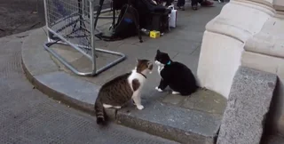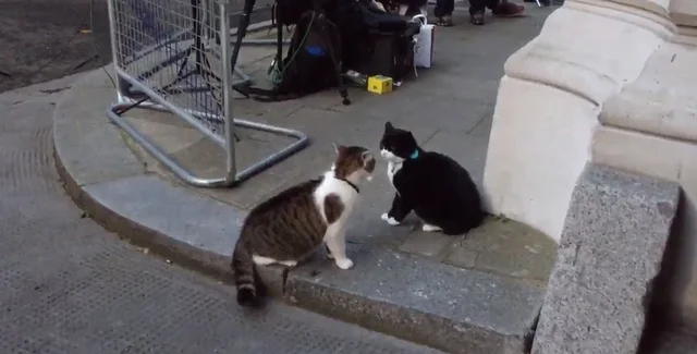Кот Ларри из резиденции премьера-министра Великобритании и кот Палмерстон из МИД королевства решили выяснить отношения на Даунинг-стрит в Лондоне. Об этом сообщает Lenta.ru со ссылкой на Daily Mail.