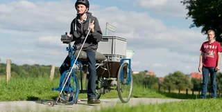 Житель немецкого города Ганновера Матиас Фухс разработал электрический трехколесный велосипед, которым могут управлять люди с ограниченными возможностями зрения, передает Deutsche Welle.