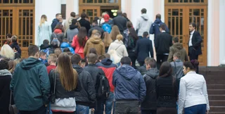 Утром 26 сентября у входа в МОН собираются люди: студенты ТНУ и их родители пришли на торжественное открытие вуза, зал для мероприятия предоставило министерство. Ожидая начала, крымчане рассказывают, как добрались: "Я на границе колорада подвез, такого от него наслушался".