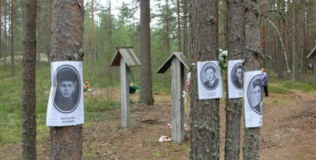 До 1997 года считалось, что 1116 заключенных, которых вывезли из Соловков в октябре 1937 года, пропали. Или, например, были затоплены в Белом море. Могильник в урочище Сандармох разыскал в 1997 году Юрий Дмитриев — исследователь и правозащитник из Петрозаводска (Карелия) вместе с Вениамином Иоффе, председателем "Мемориала" из Петербурга, который исследовал архивное дело палача М. Матвеева. На территории урочища Сандармох площадью около 10 гектаров обнаружили 236 расстрельных ям.