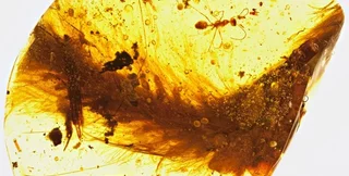 Палеонтологи нашли в янтаре хвост динозавра с перьями