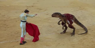 Французские борцы с корридой опубликовали ролик, в котором вместо быка против тореадора сражается юркий ящеротазовый динозавр — и погибает.
