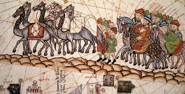 Гравюра "Купцы на Шелковом пути" из Каталонского атласа, 1375 / Фото: Wikimedia Commons