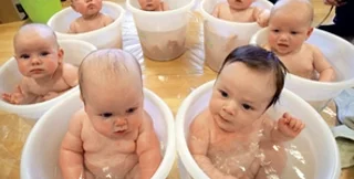 В Иджмуйдене (Голландия) для малышей проводят водные процедуры. После массажа их на короткое время сажают в ведра с водой.