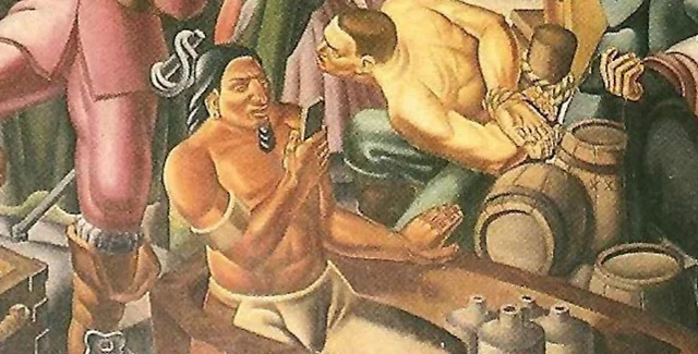 Итальянский полуабстракционист Умберто Романо в 1937 году закончил картину "Мистер Пинчон и поселение Спрингфилд". На ней изображен английский колонист Уильям Пинчон в Северной Америке. Рядом с Пинчоном — индеец в традиционной одежде и с перьями в волосах, который смотрит в "айфон". Об этом сообщает meduza.io.