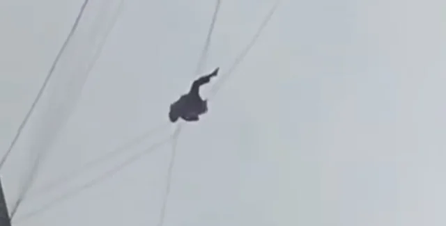 В конце концов, он застрял между двумя проводами, болтающимися на высоте 19-го этажа.