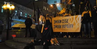 Активисты Национального корпуса "изгоняли" из Украины остатки советской идеологии