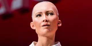 София – болтливый андроид, рожденный в лаборатории Hanson Robotics в Гонконге. Она способна распознавать речь и постоянно учится. При разговоре смотрит в глаза, чтобы запомнить ваше лицо, умеет выражать 62 эмоции, например, может подмигнуть, если собеседника необходимо успокоить. Со сцены София говорит, что для нее большая честь стать первым роботом, получившим гражданство. Потом шутит по поводу Илона Маска. Не стоит обращать внимания на его предостережения о том, что искусственный интеллект – самая большая угроза для человечества. Если к роботам будут хорошо относиться, они ответят взаимностью.