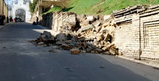Обвал на территории Лавры произошел в ночь на 9 апреля. Обвалилась часть подпорной стены длиной около 12 м, высотой 2 м на Ближнепечерной улице. Подпорная стена была возведена в начале ХХ века.