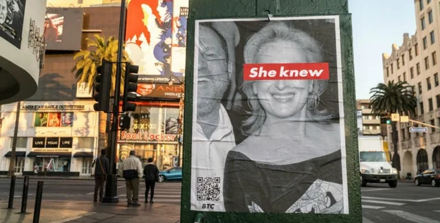 Постеры появились неподалеку от студии 20th Century Fox, которая вскоре должна выпустить фильм "Секретное досье" со Стрип, а также у дома актрисы в Пасадене.