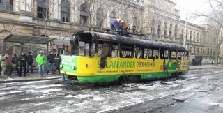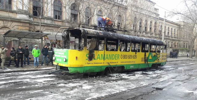 В центре Одессы загорелся трамвай, в котором в это время находились пассажиры.