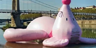 В Лионе (Франция) в реку Рону запустили гигантскую надувную мышь, которая напоминает французам об угрозе наводнений.