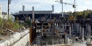 Как известно, компания "Киевгорстрой", которая является генподрядчиком, намерена завершить строительство нижнего яруса стадиона до октября.