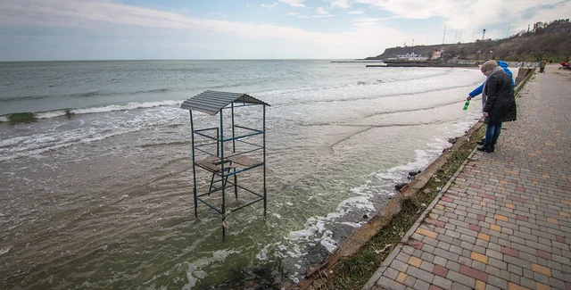 Водная стихия смыла песчаную насыпь и разрушила деревянные настилы местных арендаторов. Под удар стихии попали треть пляжей с 11-й до 16-й станций Большого Фонтана.