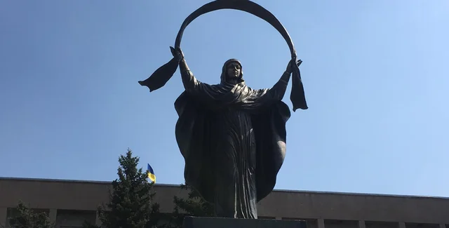 Восьмиметровую скульптуру вылили из бронзы. Автор памятника - Владимир Токарь.