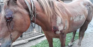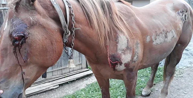 Животное падало, упиралось, потеряло подковы, а также получило повреждения глаз и туловища