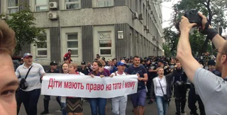 Они выкрикивали "Ганьба" и развернули транспарант с лозунгом "Дети имеют право на маму и папу".