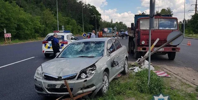 Сообщается, что 63-летний житель Киева за рулем автомобиля Opel Vectra наехал на группу сотрудников частной дорожной службы "Автомагистраль", которые выполняли работы по нанесению дорожной разметки.