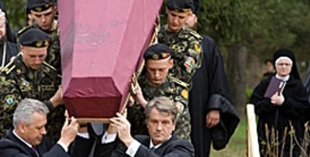 Президент Украины Виктор Ющенко принял участие в церемонии перезахоронения останков военнопленных, павших во Второй мировой войне - жертв фашистских концентрационных лагерей «Шталаг №329» и «Грослазарет-301».