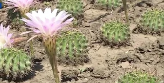 Мужчина выделил для кактусов небольшой участок во дворе. В холодное время года цветы находятся в помещении - зимуют, набираясь сил. А с весны и до осени на открытом грунте цветут.