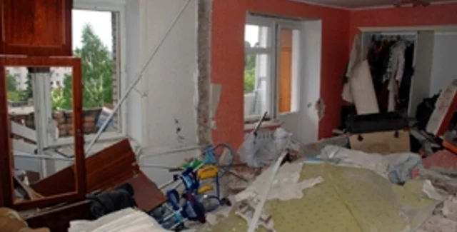 Взрыв случился на пятом этаже пятиэтажного жилого дома из шести подъездов. Взрывной волной разрушена кирпичная стена между квартирами №9 и №10 и межкомнатные перегородки, повреждены входные двери, в квартирах подъезда выбито оконное стекло. Обрушения несущих конструкций дома не произошло.