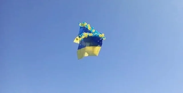 Над Донецком на воздушных шарах пролетел украинский флаг