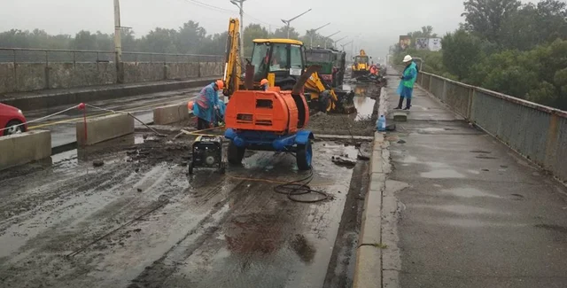 "Сейчас уже проведено фрезерование старого асфальтобетонного покрытия 2-х полос движения в направлении центра города. Продолжаются работы по разборке мостового полотна и конструкций деформационных швов", - говорится сообщении.