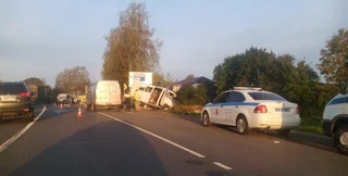 Микроавтобус Mercedes-Benz Sprinter с украинскими номерами столкнулся с грузовиком DAF