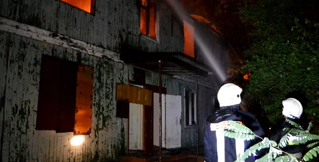 Пожар начался 25 сентября в 21.34. Когда на место прибыли спасатели, уже вовсю пылала крыша нежилого двухэтажного здания. Об этом сообщают в ГСЧС.