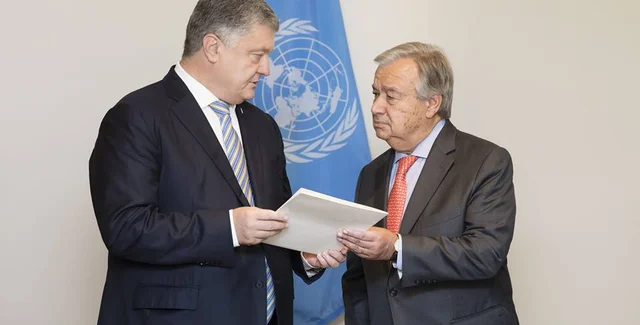 Президент Украины Петр Порошенко передал генсеку ООН Антониу Гутеррешу ноту о решении Украины не продлевать действие Договора о дружбе, сотрудничестве и партнерстве между Украиной и Российской Федерацией.
