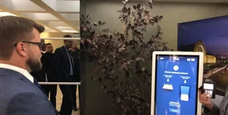 Финансовый директор ПАО "Укрзализныця" Андрей Рязанцев на своей странице в Facebook опубликовал фотографии с мероприятия по случаю ребрендинга компании. На одном из снимков можно увидеть непривычный для киевского центрального ж/д вокзала терминал по продаже билетов.