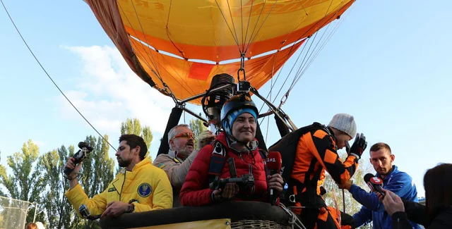 Шар подняли в воздух пилоты Сергей Скалько и Юрий Бейдик. Прыжок совершили парашютистка Мария Ткаченко и инструктор парашютного спорта Александр Марушка.