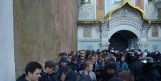 Группа из 66 человек была отправлена в районные отделения полиции, где у них проверят документы и отправят домой. Остальные до сих пор находятся перед входом в лавру, их заблокировали бойцы полка полиции особого назначения.