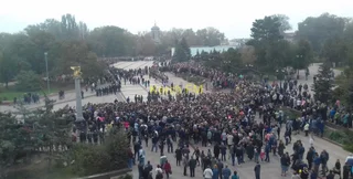 На центральной площади Керчи прощаются с 17 погибшими студентами и преподавателями в результате стрельбы в политехническом техникуме. Об этом Kerch.FM.