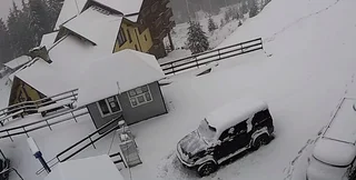 Местные пишут о том, что снега насыпало уже более чем на десять сантиметров. Начало потихоньку засыпать и Буковель. Но там снега явно меньше.