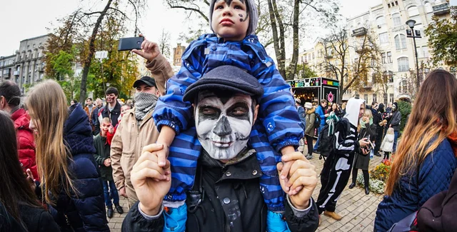 Возле станции метро "Золотые Ворота" собралось около сотни участников зомби-парада в гриме. Они одеты в костюмы мертвых монашек, рыцарей тьмы, зомби, ведьм, привидений и других мистических персонажей, передает с места событий "Апостроф".