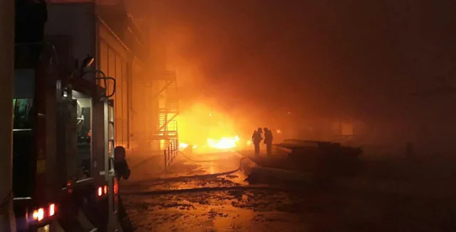 По состоянию на 22:10 в связи с угрожающими масштабами пожара людей эвакуируют со всех предприятий, расположенных поблизости.