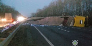 "В дальнейшем грузовой автомобиль DAF выехал на полосу встречного движения и перевернулся. Движение в направлении Житомира затруднено. На месте происшествия работают экипажи патрульной полиции", – говорится в сообщении.