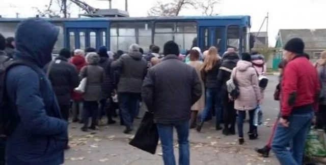 На остановках скапливается большое количество людей. Переполненные троллейбусы проезжают мимо, не останавливаясь.